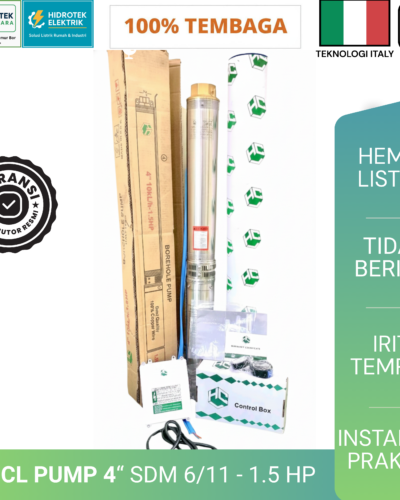 Secara keseluruhan, Pompa Air Submersible HCL Pump 4″ SDM 6/11 – 1.5 HP merupakan solusi efisien dan tahan lama untuk kebutuhan air sumur dalam. Pompa ini menawarkan tenaga 1.5 HP, debit stabil, serta material anti karat yang kokoh.