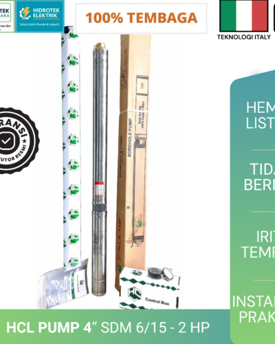 Secara keseluruhan, Pompa Air Submersible HCL Pump 4″ SDM 6/15 2 HP adalah pilihan tepat untuk kebutuhan air sumur dalam dengan tekanan stabil dan daya tahan tinggi. Tenaga 2 HP memberikan dorongan kuat, sementara desain 4 inci memudahkan pemasangan.