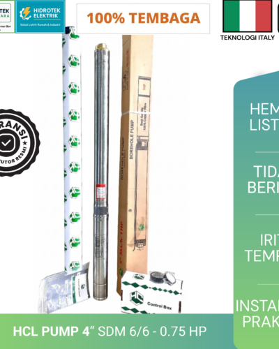 Pompa Air Submersible HCL Pump 4″ SDM 6/6 – 0.75 HP merupakan solusi andal untuk kebutuhan air bersih dari sumur bor kedalaman menengah. Produk ini dirancang untuk menghasilkan tekanan stabil dengan konsumsi listrik yang efisien. Kombinasi tenaga dan daya tahan menjadikannya pilihan tepat untuk rumah tinggal maupun usaha kecil.