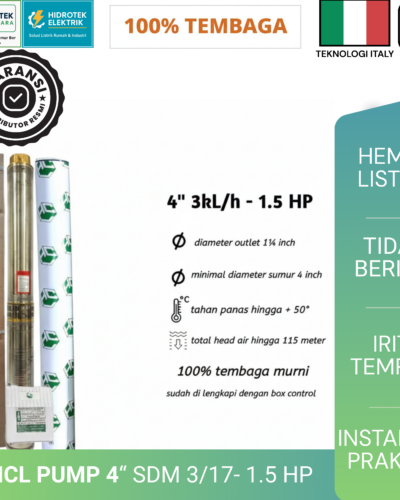 Jika Anda membutuhkan pompa submersible 4 inch dengan tenaga 1.5 HP yang tangguh dan efisien, produk ini bisa menjadi pilihan tepat. Tekanan stabil, material kuat, serta konsumsi listrik yang terkontrol menjadikannya investasi jangka panjang untuk sistem air bersih Anda.